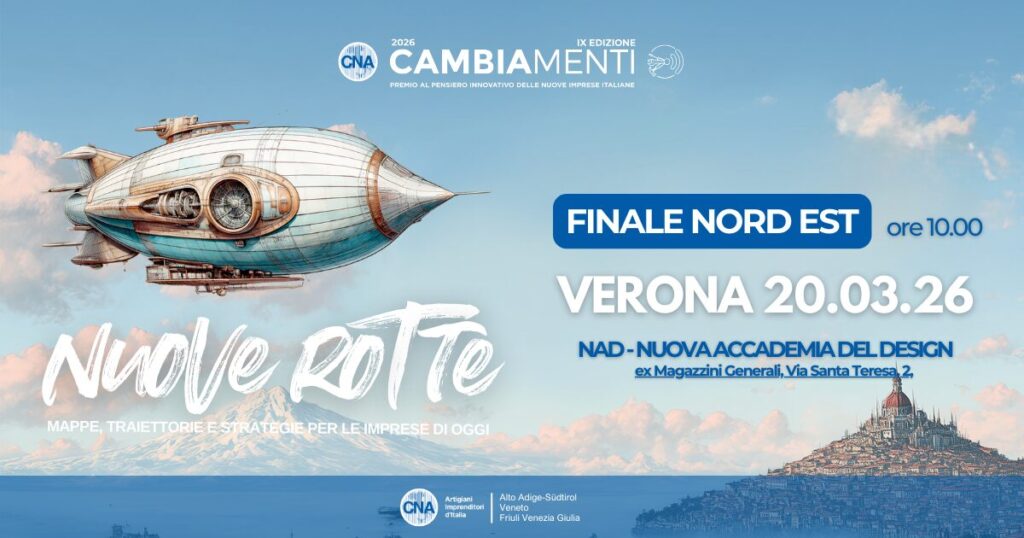 Cambiamenti imprese Nord-Est. Sono 23 le nuove imprese innovative provenienti da Veneto, FVG e TAA che si sfideranno alla Qualificazione Nord-Est del Premio Cambiamenti di CNA, che andrà in onda il 20 marzo a Verona, presso NAD – Nuova Accademia del Design, via Santa Teresa 2.